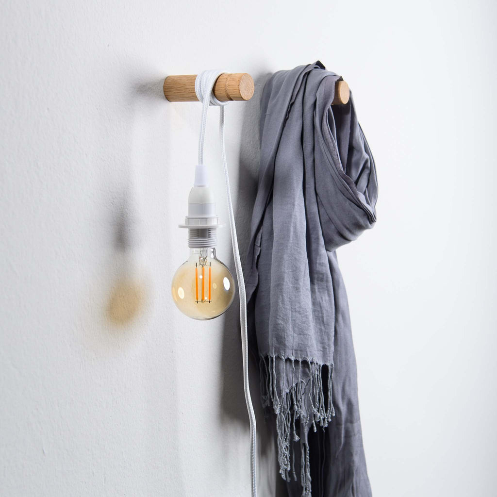 You can install these minimalistic wood wall hooks in the entryway as a coat hook, as a hanger for plants, towels, lights, or other items of your choice.