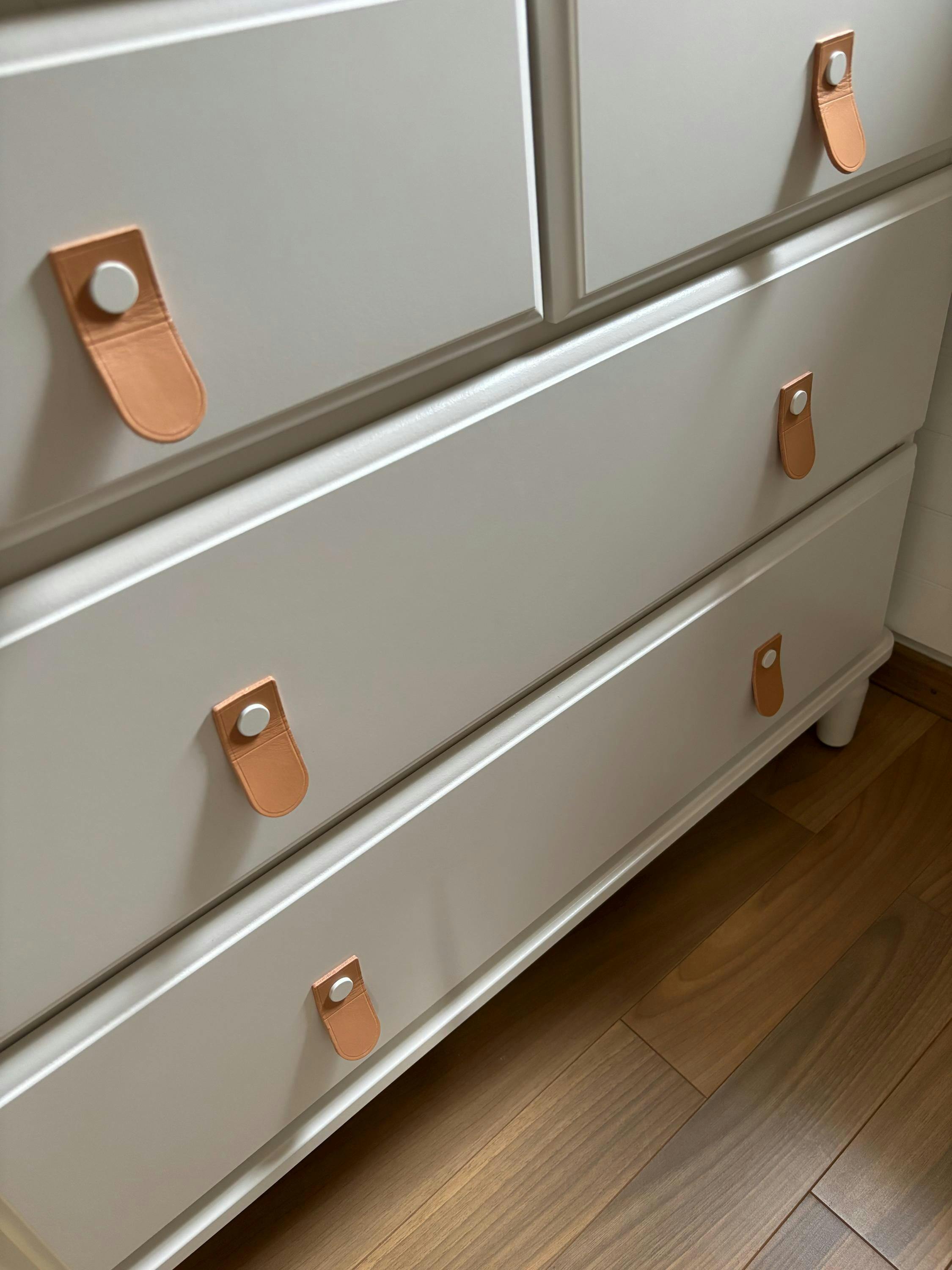 - Can be used as leather door handles in your kitchen, as leather cupboard pulls or leather dresser handles in your bedroom, as leather pulls in your bathroom, or as drawer handles in the nursery.