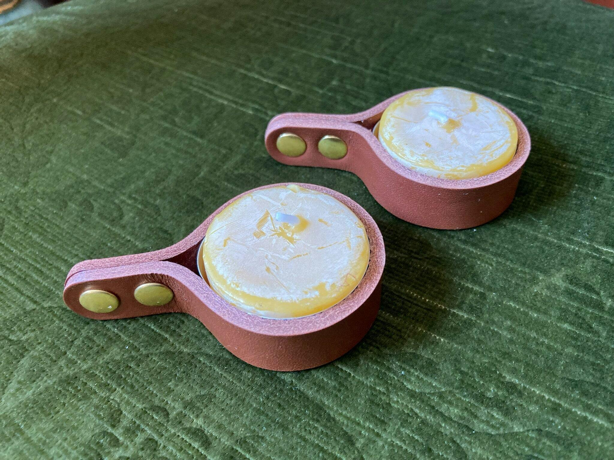 Well made and sturdy leather holders for tea light candles. Perfect for traveling.