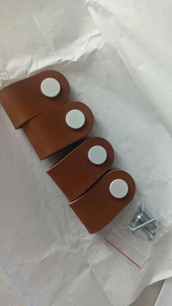 all small rounded leather drawer pulls, leather cabinet pulls, leather pulls, Ledergriffe, poignees cuir